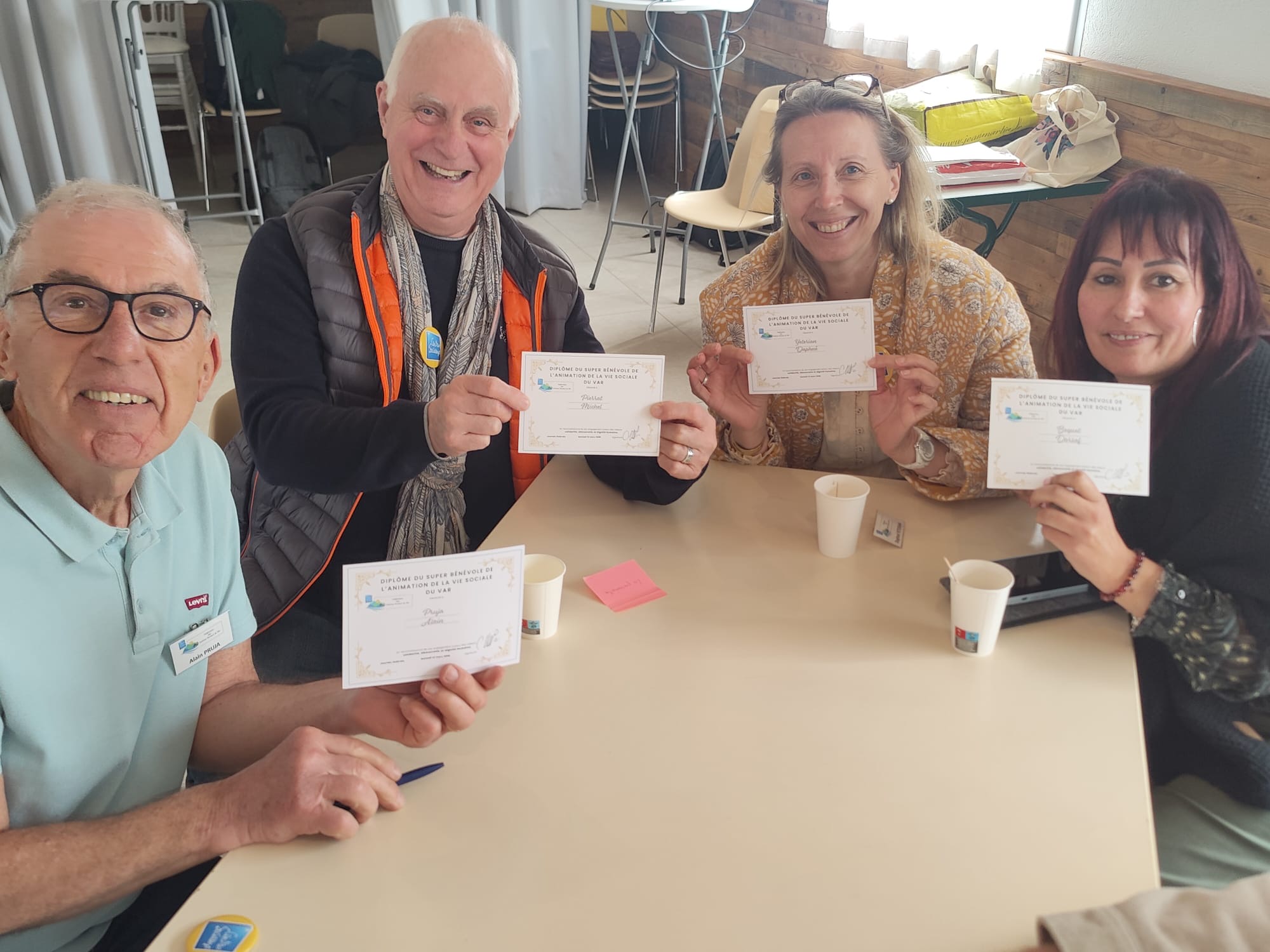 La journée s’est clôturée sur une note conviviale où tous les administrateurs se sont vus remettre un diplôme du super bénévole de l’animation de la vie sociale préparé par les membres du bureau.